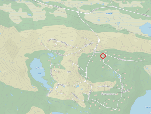 Vel oppe på flata ta opp til høyre i enden av myra (første mulige) og følg veien 650 meter. Ta deretter første vei ned til venstre og hytta kommer på høyre hånd i en krapp høyresving.